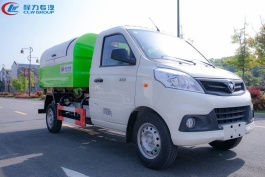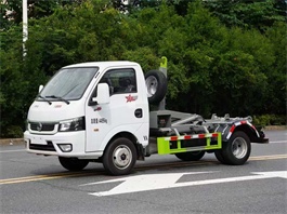项目参数:东风途逸勾臂垃圾车可以一车配多箱、垃圾收集利器、蓝牌C证可开的小型生活垃圾车,可配···