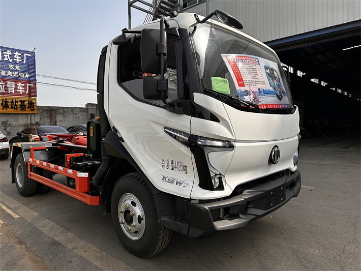 项目参数:东风途逸勾臂垃圾车可以一车配多箱、垃圾收集利器、蓝牌C证可开的小型生活垃圾车,可配···